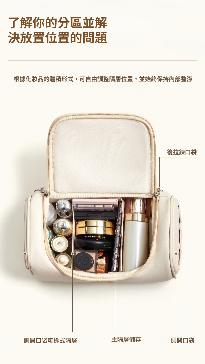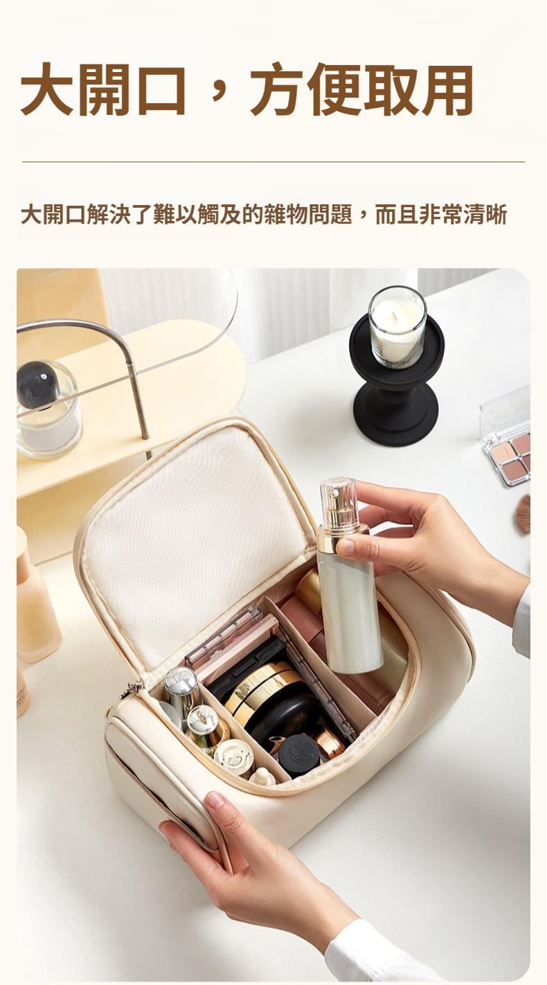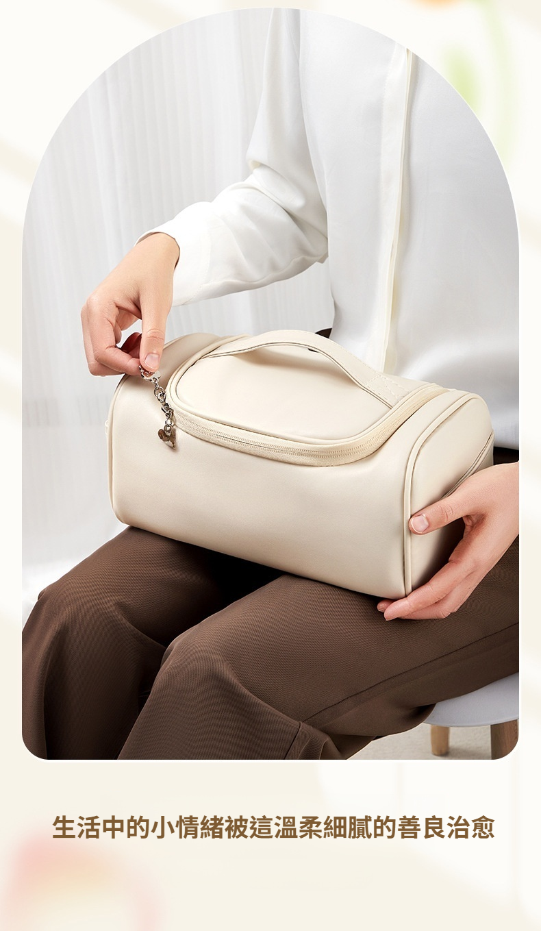 舒適手持設計盥洗包大容量化妝品收納分區收納柔軟療癒浪漫化妝品收納袋